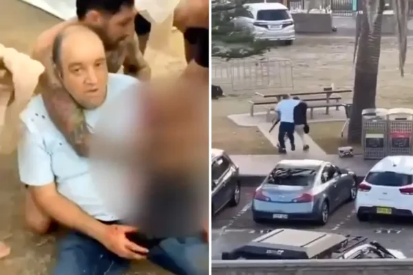 Newly surfaced dashcam video appears to show a bystander, who was later shot, attempting to disarm one of the alleged Bondi Beach attackers moments before he reached the footbridge during Sunday evening’s terror attack.